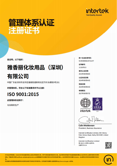 ISO9001:2015質量管理體係認證(英文)
