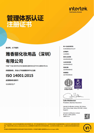 ISO14001:2015環境安全管理體係認證(英文)